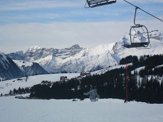 We actually ended up going to the same resort that I visited in January, La Clusaz. We accidently got on the wrong lift and ended up on the same Red slope that I kinda freaked out on last time, and tried to ride the lift back down, haha, but they wouldn't let us, so we just had to go on down, and we ROCKED IT. :-) yay.